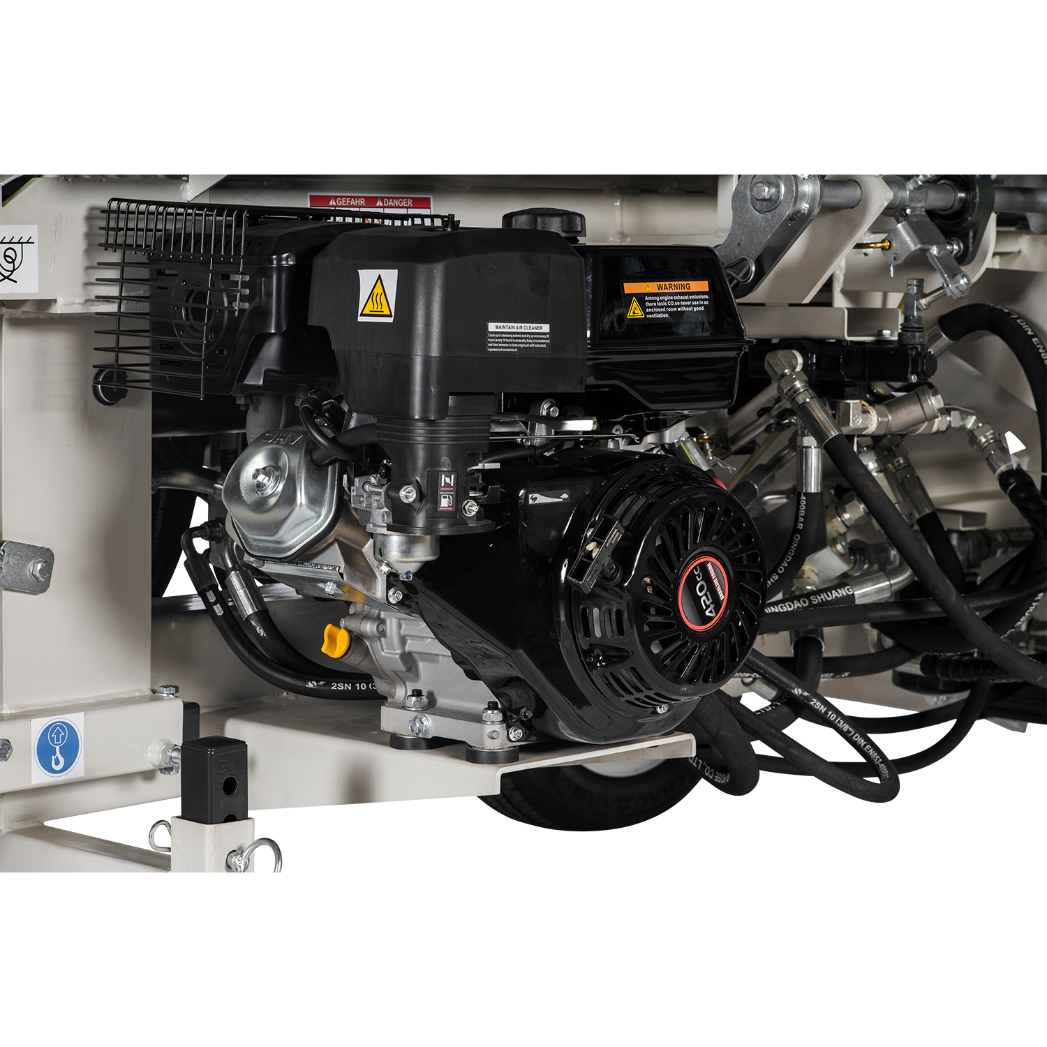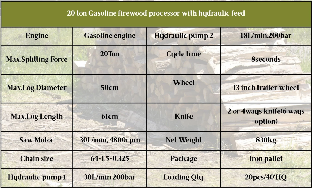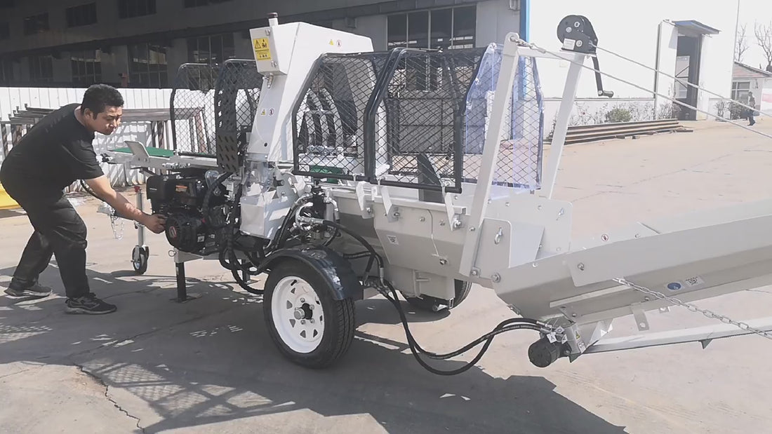 The Wontide hydraulic gasoline log splitter is the ultimate tool for efficient splitting and sawing of logs. With a powerful 9.2 kW gasoline engine and hydraulic chainsaw and log holder operation, this unit is ideal for demanding jobs. The integrated hydraulic feeder ensures smooth operation and the automatic removal of the material by means of a belt conveyor further facilitates the work. With the included three-way control valve set and PARKER pump & hydraulic motor, this machine is an indispensable tool for anyone who expects professional results.