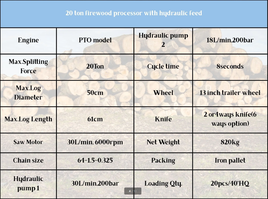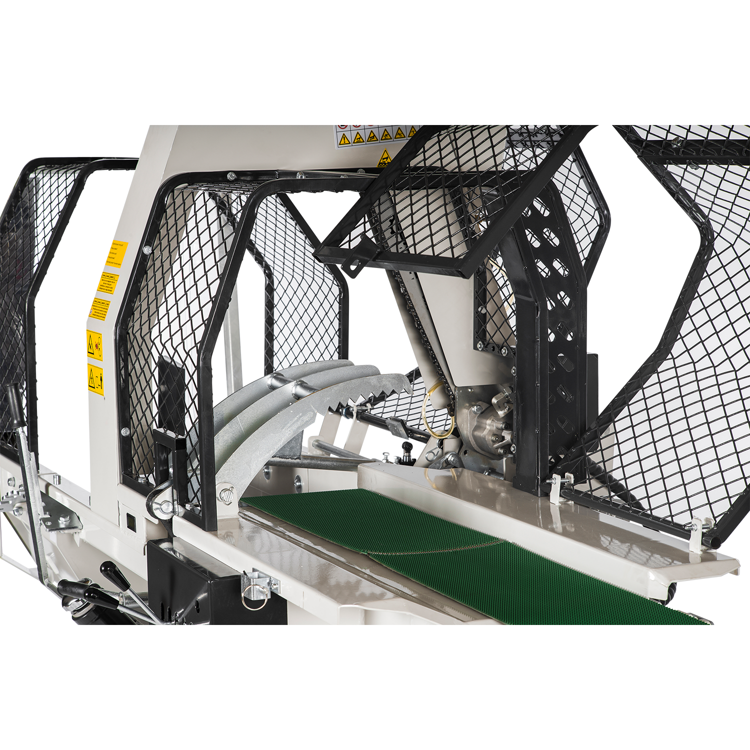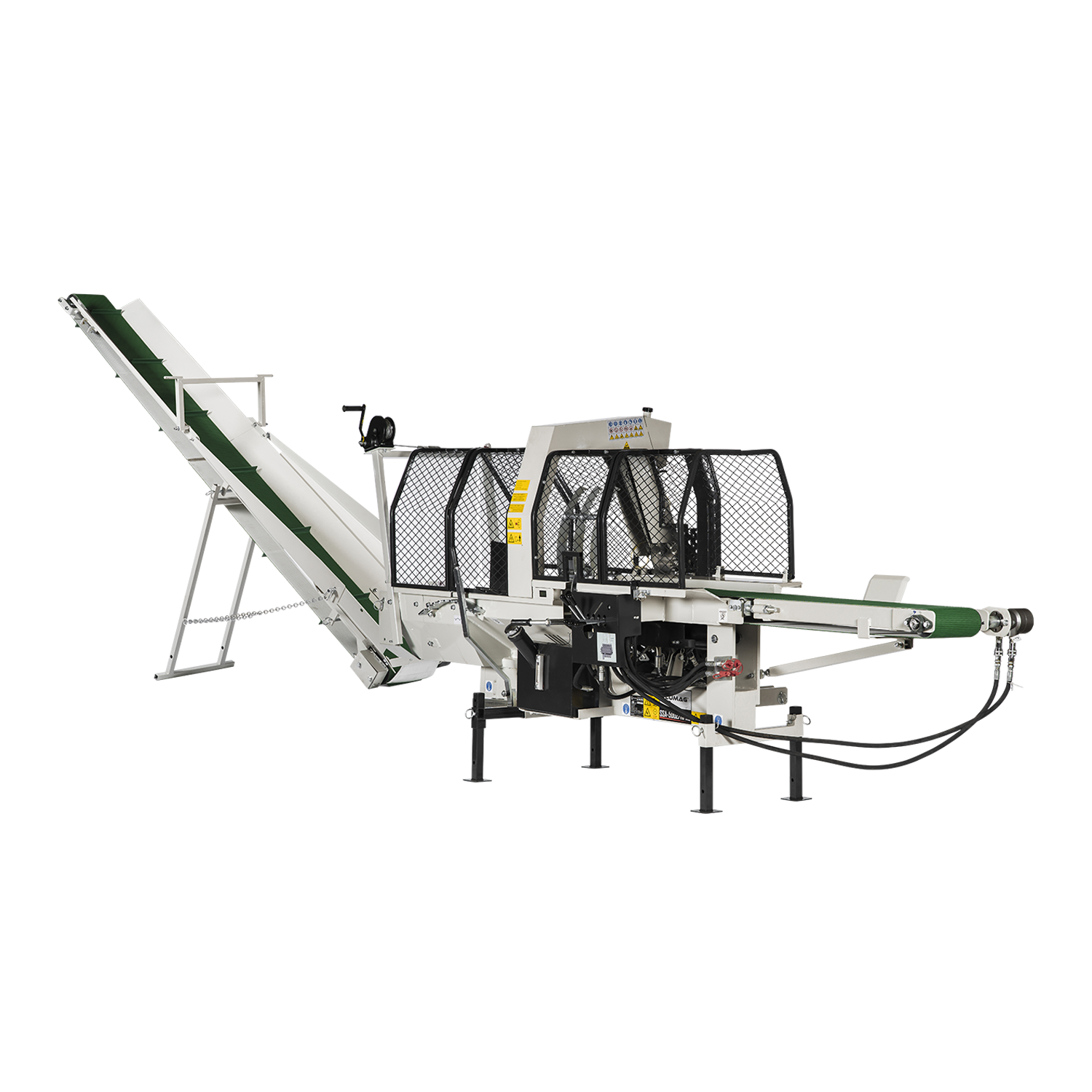 The Wontide hydraulic PTO automatic log splitter offers simple and easy operation for processing logs by sawing and splitting in one pass. Automatic material removal by belt conveyor and hydraulic chainsaw and log holder operation allow even more fatigue-free work. The integrated hydraulic feeder belt supplies the saw log machine with material and the PTO drive enables speedy work even with larger logs up to 50cm in diameter. Including three-way control valve set, PARKER pump & hydraulic motor.