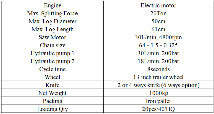 The automatic splitting machine that we developed and designed in our company has been a best seller for years. And for good reason: This fully automatic machine features automatic chain lubrication of the high quality saw chain and a built-in hydraulic chain feed conveyor. The reinforced riving knife mount and high-quality valves, pumps and controls ensure smooth operation. The powerful electric motor drives the automatic splitter. The new practical 250mm wide discharge conveyor simply carries the material away. A 4 ways or 6-way splitting cross, log lifter and log feeder are also available as options.
