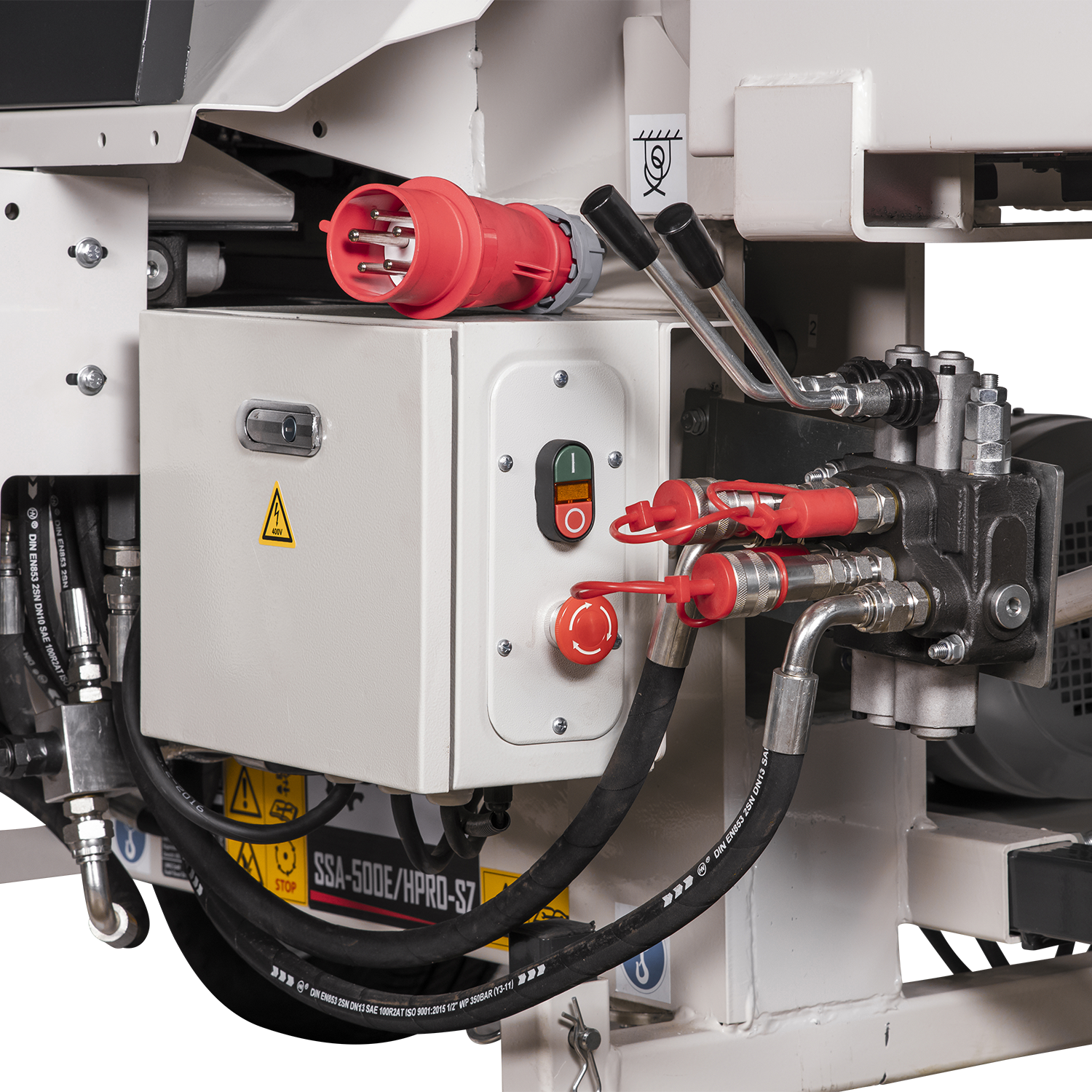 With the fully hydraulic MACHINE combination firewood processor with 400V electric & PTO drive from Wontide, even the production of large quantities of firewood is child's play. The 2 + 1 control valve set ensures simple and easy operation. The automatic chain lubrication of the saw chain and the processing of logs by sawing and splitting in one pass make working with this device particularly efficient. The chainsaw is equipped with an OREGON brand saw chain, which stands for high quality and durability. With a processing capacity of 4 - 6 m³ of wood/hour, the work is done quickly. The automatic removal of the material by means of a belt conveyor makes work even easier. With two different drive options: Either with the powerful 9.5 kW electric motor or the PTO drive, for speedy work even with larger logs up to 50 cm in diameter. The hydraulic chainsaw and log holder controls ensure quick and easy operation. An integrated hydraulic feed chain supplies the firewood processor with material. The set includes a control valve set as well as a high quality pump and hydraulic motor.