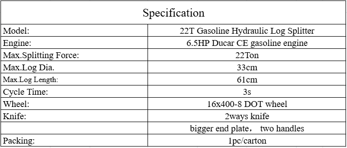 This22T Gasoline Hydraulic Log Splitteris a high-performance wood-processing tool built for heavy-duty use, with standout features: