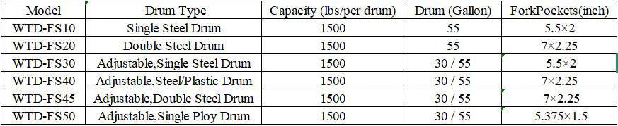 Easily and quickly lift drums without hydraulic or electric connections.Simply slip onto forks and tighten hand screws.Heavy duty steel construction.Lifts,transports and deposits drums without leaving the driving position .Firm pressure is automatically applied by action of the loaded drum and will be firmly maintained in the same position until being deposited, it is then automatically released.