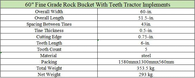 60" Fine Grade Rock Bucket With Teeth Tractor Implements