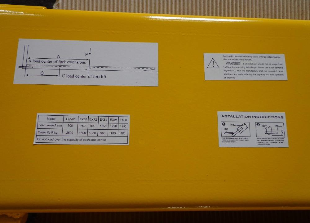 Extensions which made from high tensile grade steel prevents fork extensions from sliding off forks during use. Zinc plate for corrosion protection. Meet AS2359.15 require that extensions are no more than 167% of the supporting tine's length.