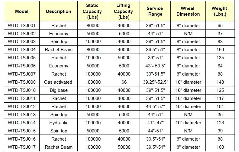Trailer Stabilzing Jacks are used to prevent up-ending of semi-trailers when they are not connected to a tractor during loading and unloading operations. Also used to level trailers parked on sloped ground and to prevent landing gear from sinking into a soft surface. High strength steel construction. Flush-type zerk fittign for lubricating ACME screw. Meets OSHA regulations when used with wheel chocks. yellow powder coat finish for added toughness. Includes reflective collar for visibility at night. The color of handles included with models may vary between red and black.