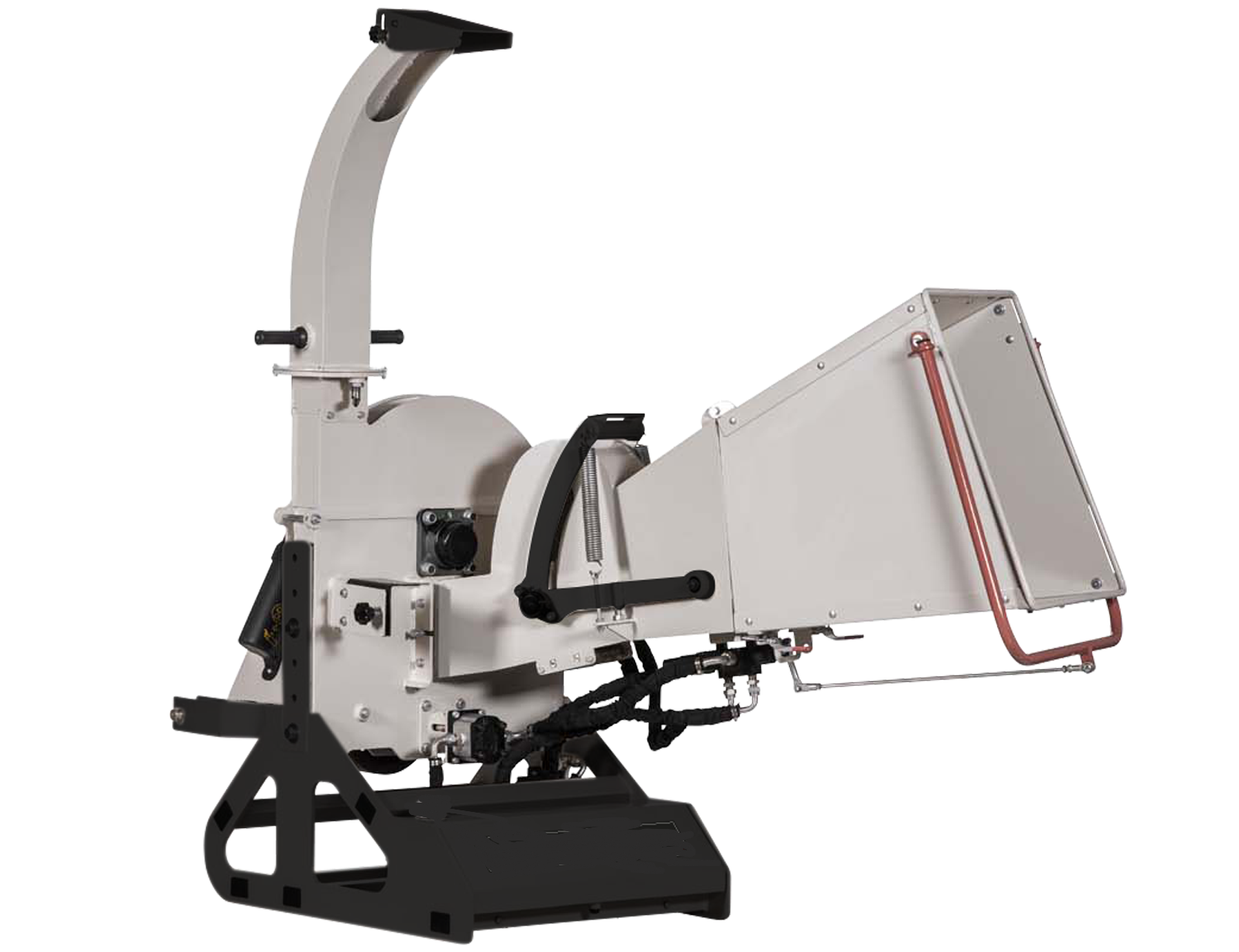 - Chipping Performance: With knives running at 1,100 rpm and equipped with 4 blades (each 70mm x 114mm x 8mm), it can handle wood chipping tasks with an HP range of 35 - 100. The branch capacity reaches a maximum of 200mm. The outlet chute is 360° rotatable and adjustable, facilitating the direction of chips as needed. A flywheel with a 24" diameter and weighing 45kgs helps maintain smooth operation.