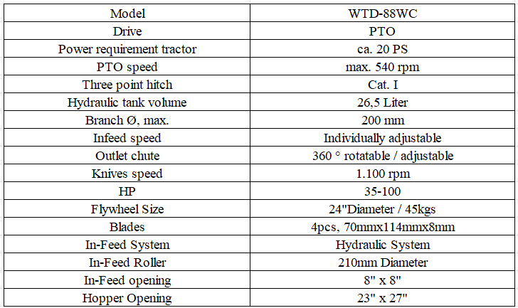 Wontide WTD-88WC PTO Drive Wood Chipper